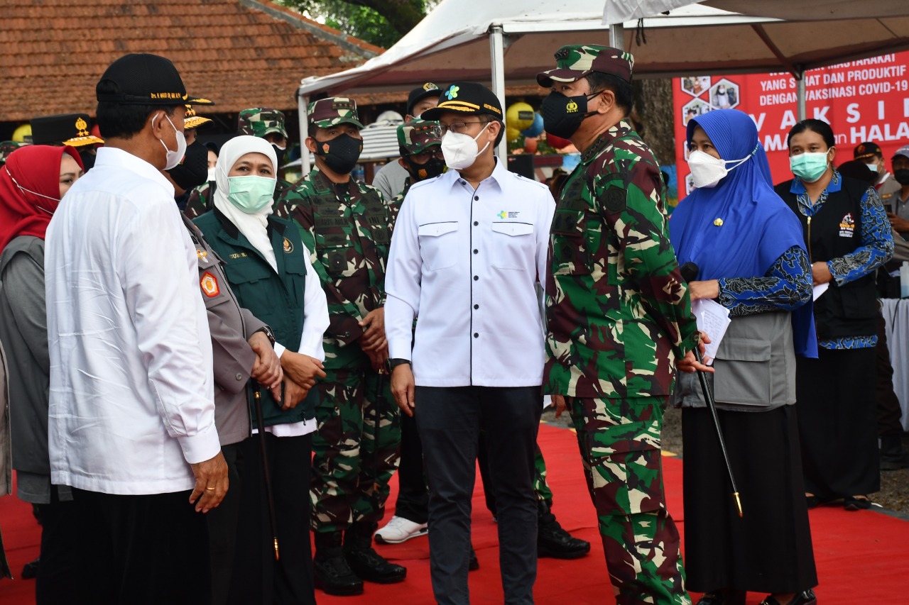 Danrem 081/DSJ Dampingi Panglima TNI dan Kapolri Tinjau Vaksinasi dan Posko PPKM Mikro di Madiun