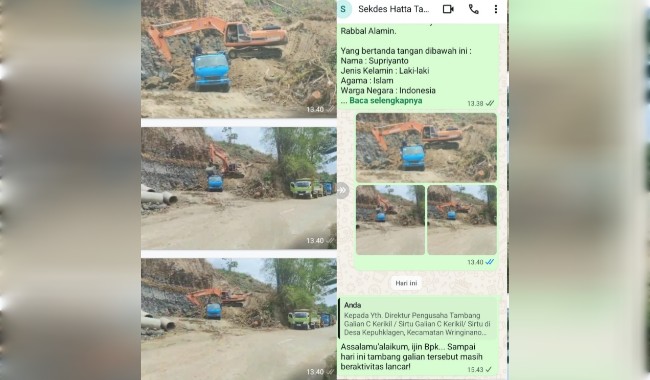Bahwa, Bertempat di Desa Kepuhklagen, Kecamatan Wringinanom, Kabupaten Gresik, Jawa Timur. Terdapat aktivitas tambang galian C Kerikil/ Sirtu dugaan belum memiliki IUP OPK Izin Usaha Pertambangan Operasi Produksi Khusus. beraktivitas sudah lama, sejak hari senin 27 Oktober 2025 sampai berita ini diturunkan. Selasa 20 Januari 2026.
