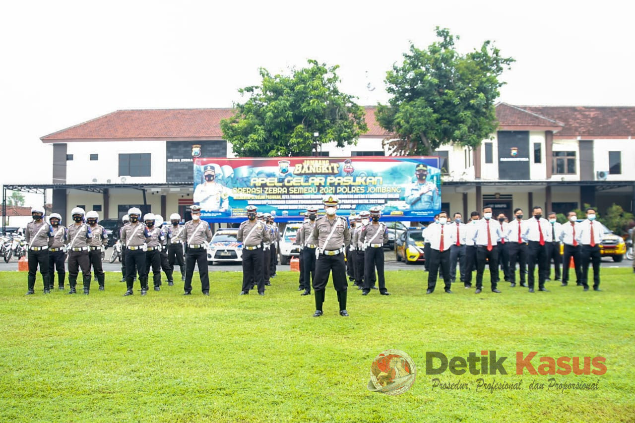 Detikkasus.com | Jombang – JATIM -Polres Jombang melaksanakan Apel Gelar Pasukan Operasi Zebra Semeru 2021 dalam rangka menciptakan kondisi Kamseltibcarlantas bertempat di Lapangan Mapolres Jombang, Jalan KH. Wakhid Hasyim No. 62 Jombang, Senin (15/11/2021).