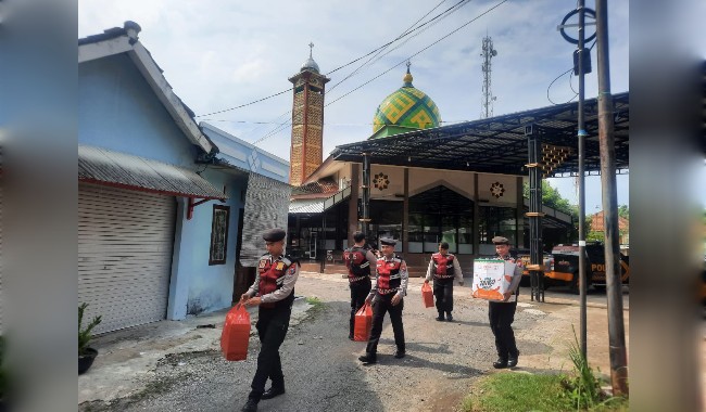 Dalam kegiatan tersebut, personel Samapta Polres Situbondo membagikan 50 paket nasi kotak lengkap dengan susu dan snack kepada para santri.