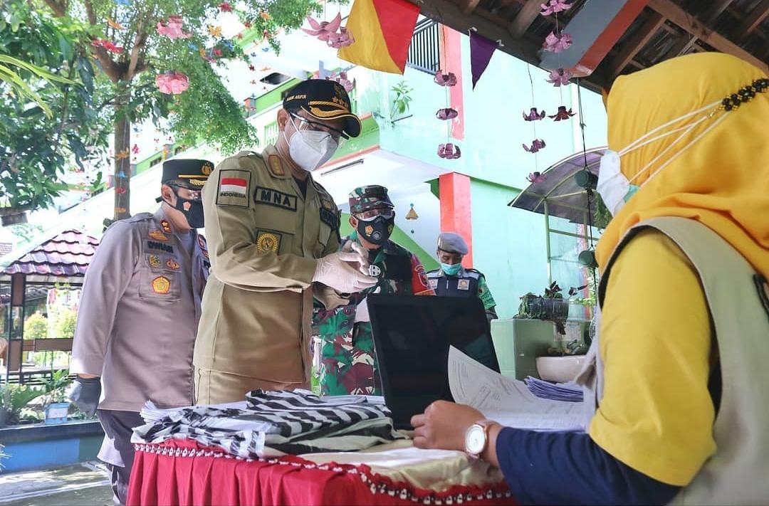 Selain meninjau pelaksanaan vaksinasi, Forkopimda Trenggalek juga memastikan penerapan mikro lockdown di beberapa lingkungan yang ditemukan kasus positif.