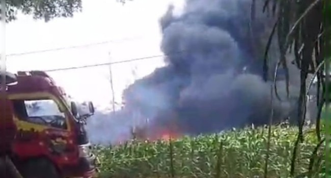 Kepulan asap hitam tebal membumbung tinggi ke udara, membuat warga sekitar panik dan berusaha menyelamatkan diri.