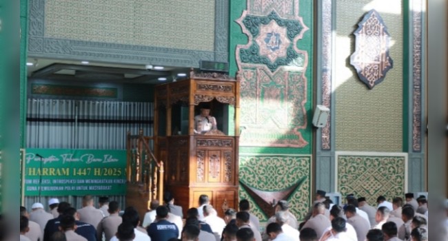 “Semangat hijrah yang di wariskan Rasulullah hendaknya menjadi inspirasi bagi kita untuk bertransformasi menjadi pribadi dan organisasi yang lebih baik. Hijrah bukan hanya berpindah tempat, tetapi berpindah sikap dan pola pikir, dari yang kurang baik menjadi lebih baik, dari yang pasif menjadi lebih responsif, dan dari yang biasa menjadi luar biasa,” kata Ari Wahyu, dalam sambutannya pada peringatan tahun baru islam 1 muharam 1447 hijriah di masjid babut taqwa polda aceh kamis 3 juli 2025.